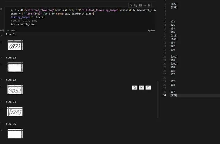 此图显示了我审查和纠正模型错误的环境。在左侧,我有一个Jupyter笔记本,我可以运行单元格来显示接下来的五张图像,以及每张图像标签对应的行。在右侧,我所有标签都在对应的行上。这个环境使查看所有模型预测并纠正任何错误变得容易。图片由作者提供。