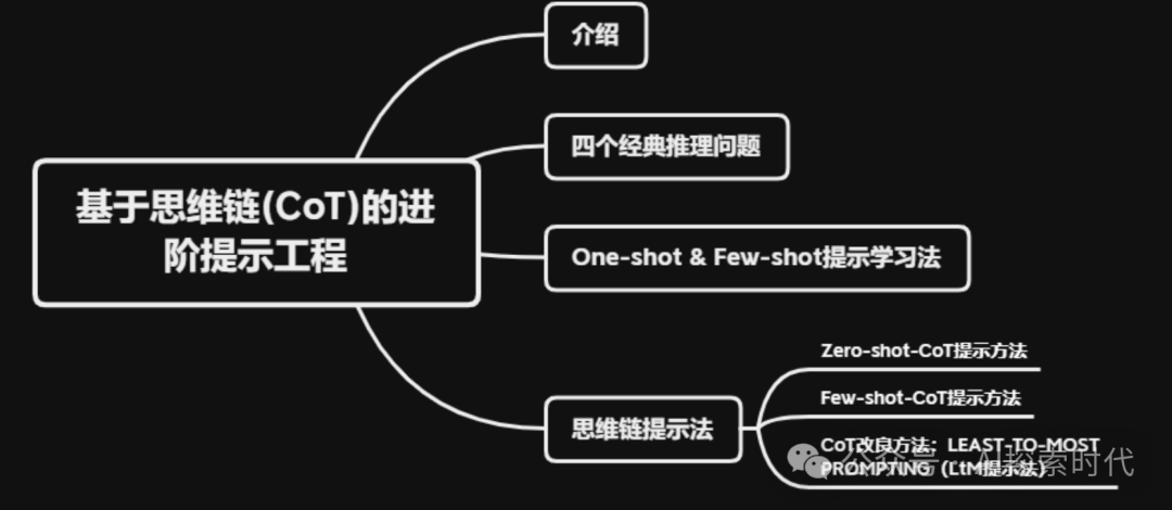 而仅有提示词功能还不足以完全发挥大模型的能力,因此又有了思维链(CoT)的出现,思维链的作用就是让大模型有一个完整的思考过程,并且可以给出一些案例,来让大模型处理更加复杂的任务。