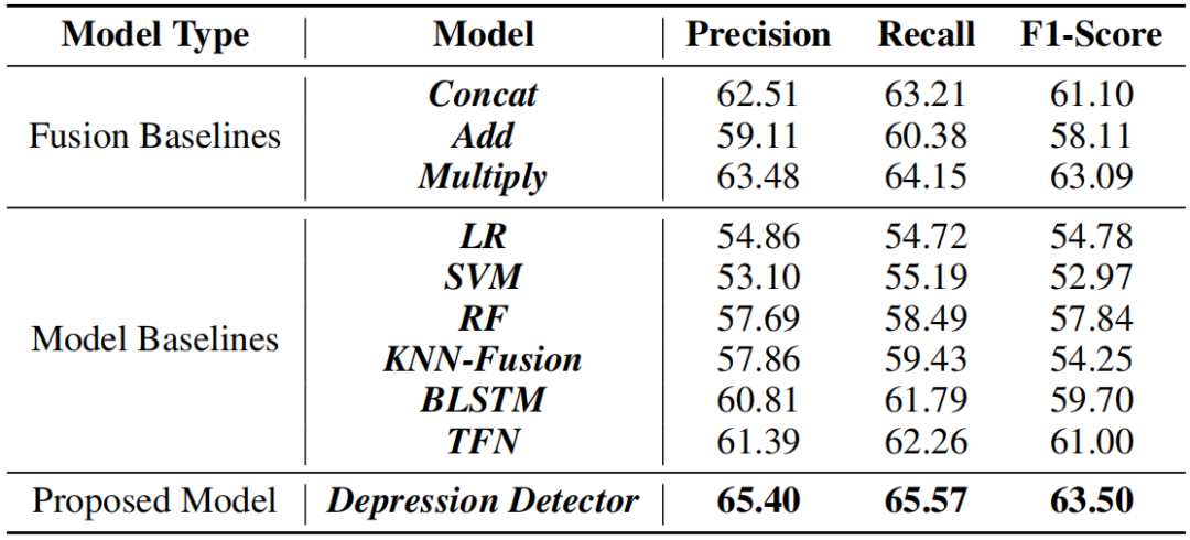 - 首次尝试将交叉注意力机制应用于多模态抑郁症检测,并通过实验验证了其有效性。