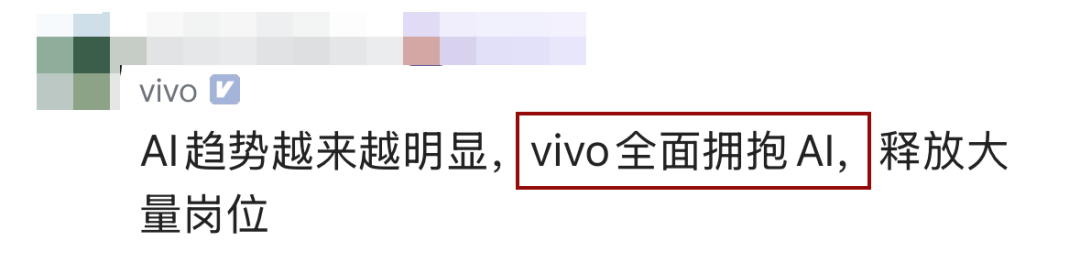 评论区堪称“AI时代职场生存图鉴”,有人焦虑:AI写代码比我还快,饭碗要没了!也有人头脑清醒:不会用AI的程序员,才是最先被淘汰的!还有一位vivo从业者爆出猛料:vivo全面拥抱AI,释放大量岗位!