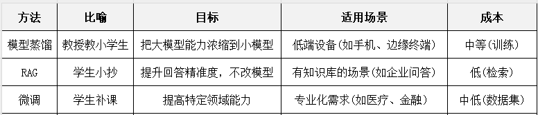 优点:小模型体积小、跑得快,适合手机、边缘设备这种“穷地方”