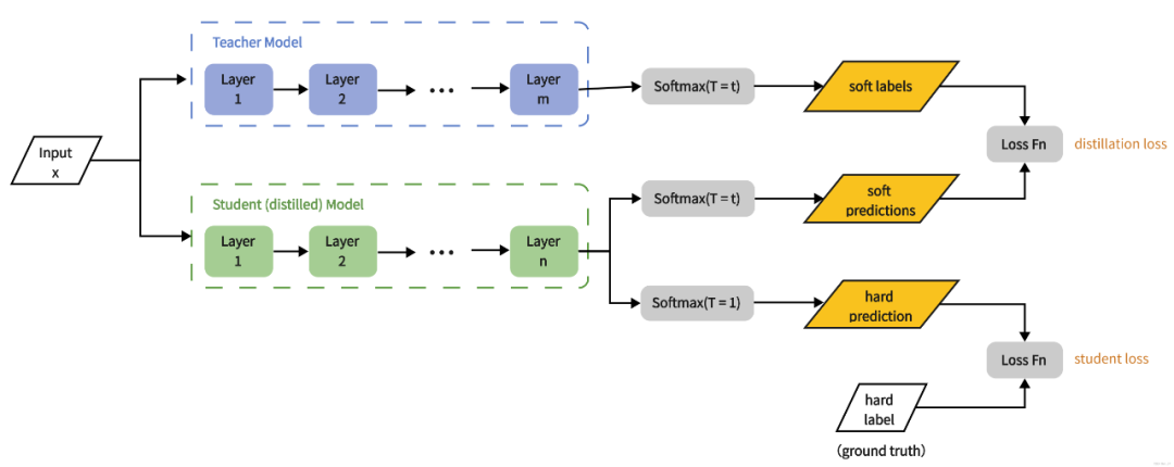 怎么办呢?我们让教授把自己的“解题技巧”浓缩一下,教给小学生,虽然不能让小学生变得和教授一样牛,但至少能学会几招,能应付日常问题。这就是模型蒸馏。