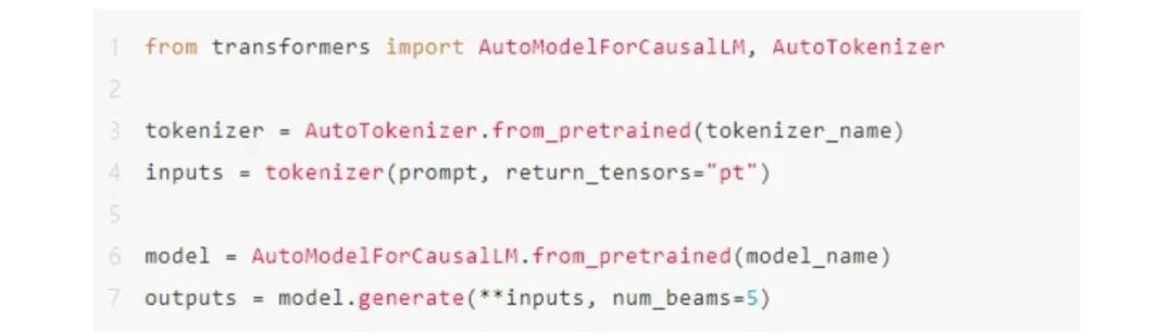 以下代码片段使用transformers库,在模型生成过程中指定束搜索路径的数量(例如num beams=5表示考虑5个不同的假设):