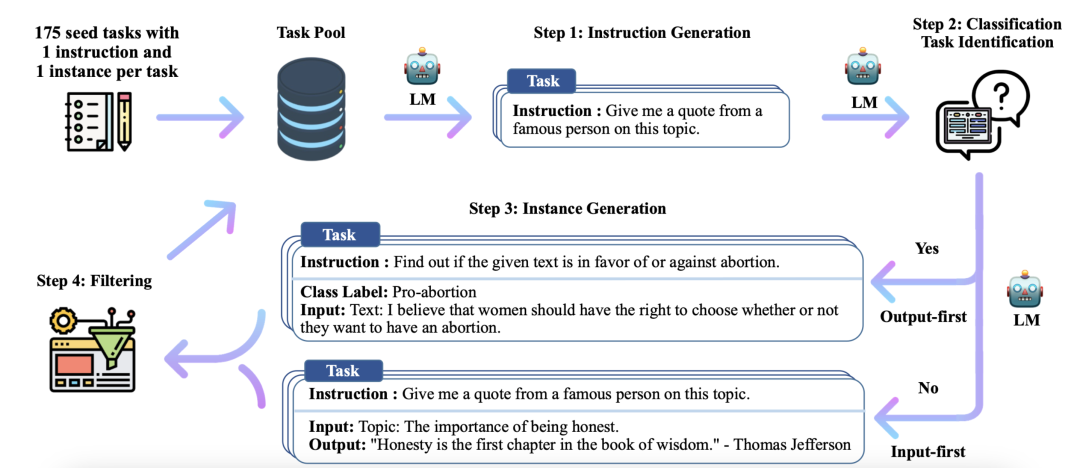 印象里,斯坦福有一个 self-Instruct 的工作,给每个task_type 准备一些 seed prompt,然后随机采样 seed,再喂给一个能力很强的 pretrain 模型,让它基于这些 seed问题再续写出一些问题。