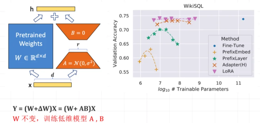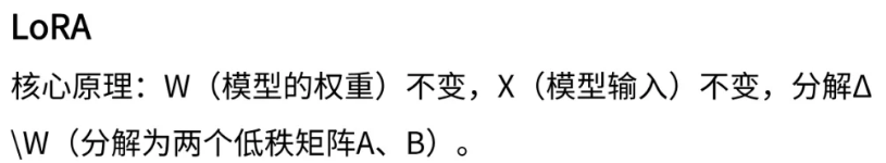 在训练过程中,冻结预训练模型的权重,仅训练LORA模块中的矩阵A和B。