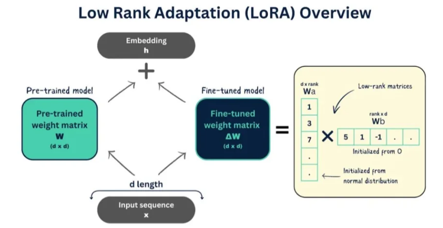 描述:秩是LORA中最重要的参数之一,它决定了低秩矩阵的维度。
