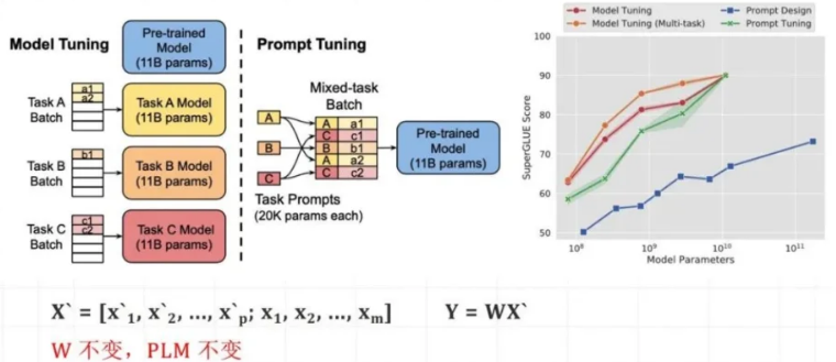 核心原理: PLM(预训练模型)不变,W(模型的权重)不变,X(模型输入)改变。