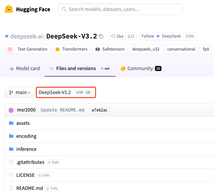DeepSeek-V3.2 虽好,无奈太庞大了,完整模型文件 690 GB