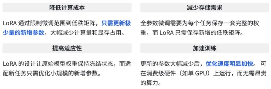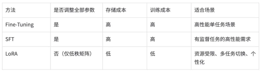 LORA 是对 Fine-Tuning的高效优化: 通过限制参数更新范围,优化微调效率,同时保留性能。