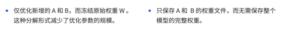 具体来说,引入了 低秩矩阵分解 的思想,用较少的新增参数实现对模型的微调。