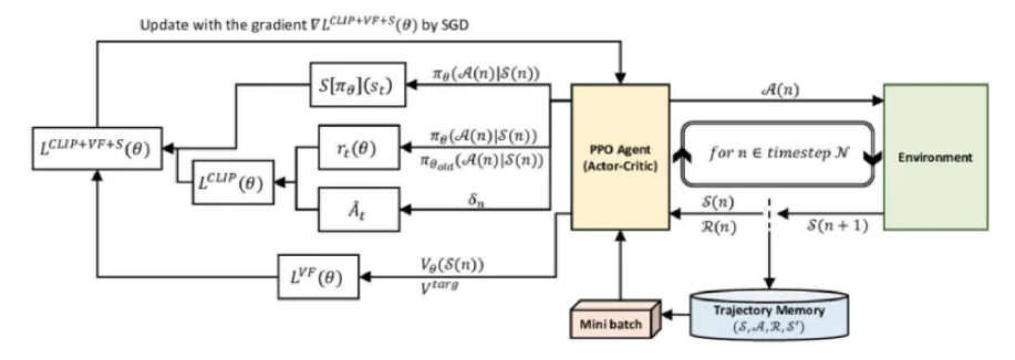 PPO(ProximalPolicy Optimization)是强化学习中一种流行的策略优化算法,由OpenAl提出,用于在策略梯度方法中平衡训练稳定性和效率。