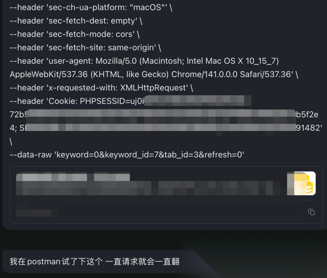 原来,这个网站的翻页逻辑并不是靠前端点击,而是在服务端维护了一个隐蔽的“游标”(Cursor)。只要在请求头里带上正确的游标参数,数据就会源源不断地返回。