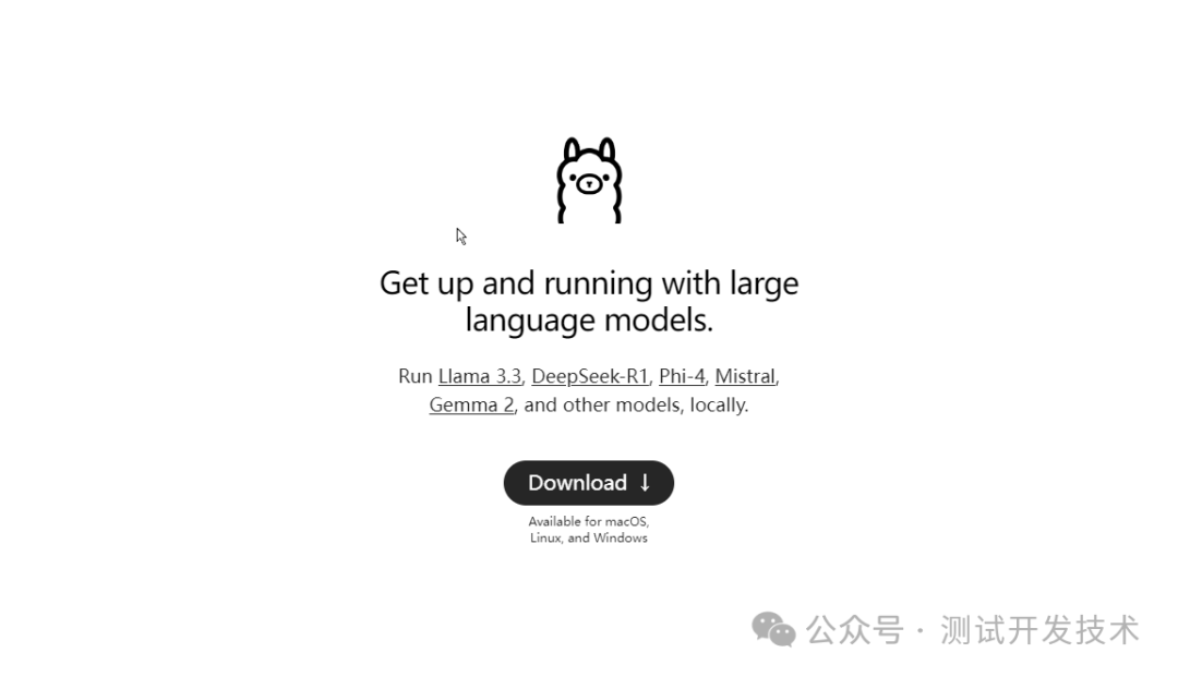 我们先进入Ollama的官网(https://ollama.com),下载对应操作系统的安装包。下载完成后,直接安装即可。