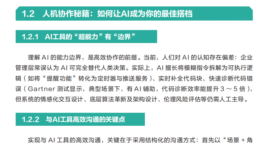 书中从最基础的内容讲起,首先介绍AI 如何重塑软件开发方式,还告知了人机协作秘籍:如何让 AI 成为你的最佳搭档。