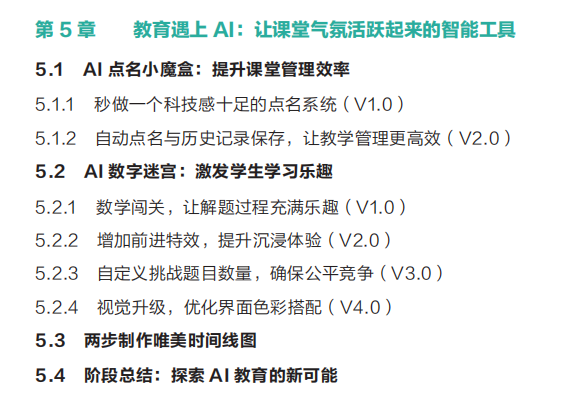 对于希望将AI 融入教学的教育工作者来说,书中提供了开发教育工具的案例。例如,制作一个让课堂气氛活跃起来的智能工具,提升课堂管理效率,激发学生的学习兴趣。