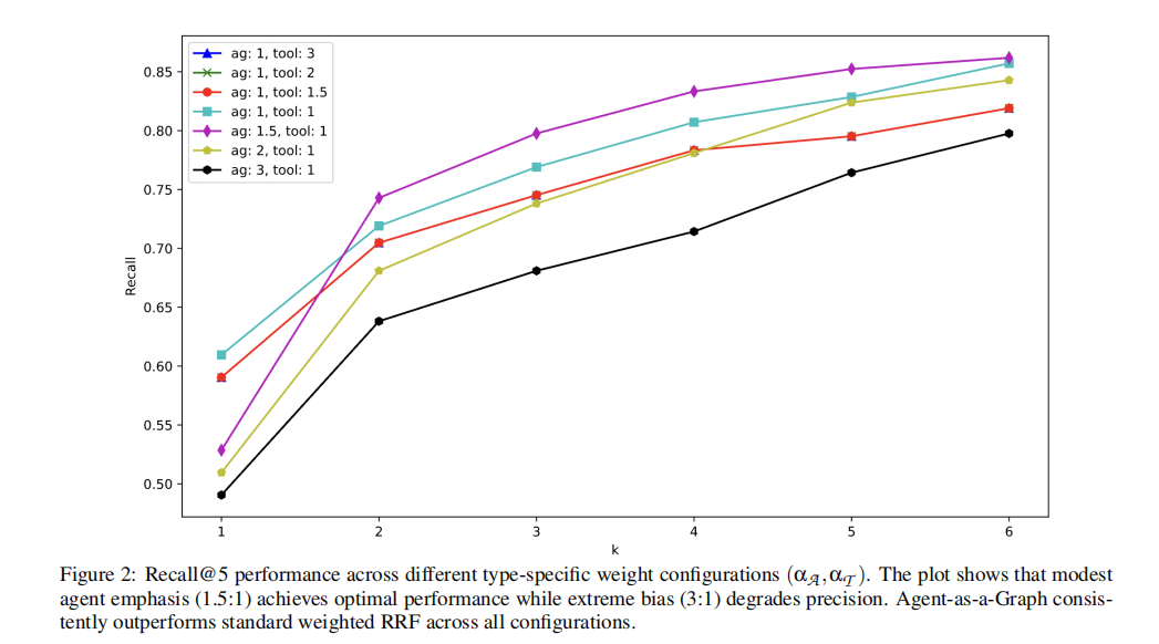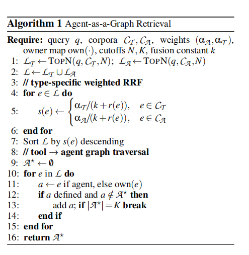 - 步骤二:应用类型特定的加权倒数排名融合(wRRF)对工具和代理进行重排序