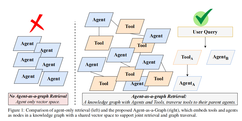 随着多智能体系统扩展到数百个专业代理协调数千个工具和MCP服务器,将查询路由到正确的代理仍然是一个基本挑战。Agent-as-a-Graph提供了一个创新的解决方案,通过知识图谱结构实现了工具和代理的统一表示和检索。