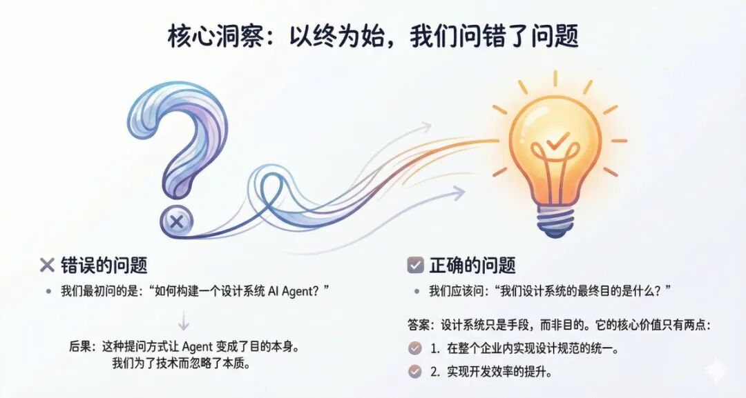 团队意识到,他们最初问的问题是:“如何构建一个设计系统 AI Agent?”