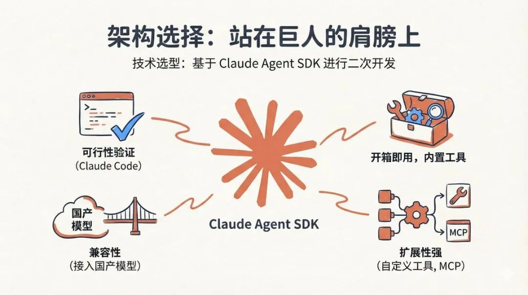 我推荐他们基于 Claude Agent SDK 进行二次开发,而不是从零造轮子。一些关键理由包括:
