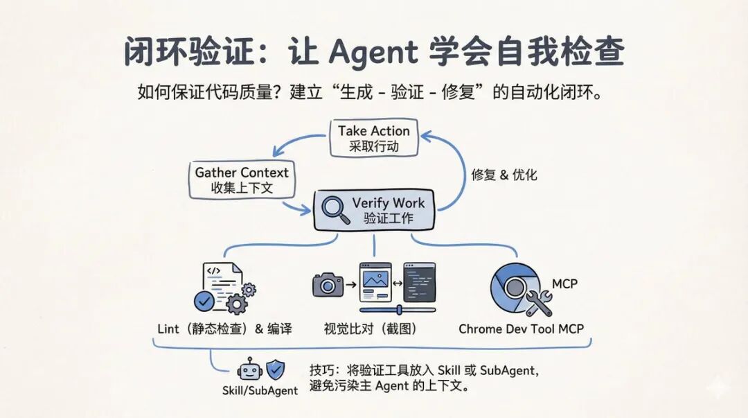 一个节约主 Agent 上下文的技巧:把验证工具放入 Skill 或 SubAgent,避免污染主 Agent 的上下文。