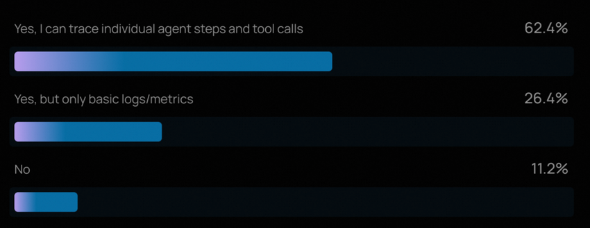 “如果看不见,就无法优化。” 89% 的组织已实施了可观测性系统,其中 62% 的组织可以详细追踪Agent的完整过程。在生产环境中,能够追踪Agent的每一步思考(Chain of Thought)和工具调用(Tool Use),是调试线上故障的唯一手段。