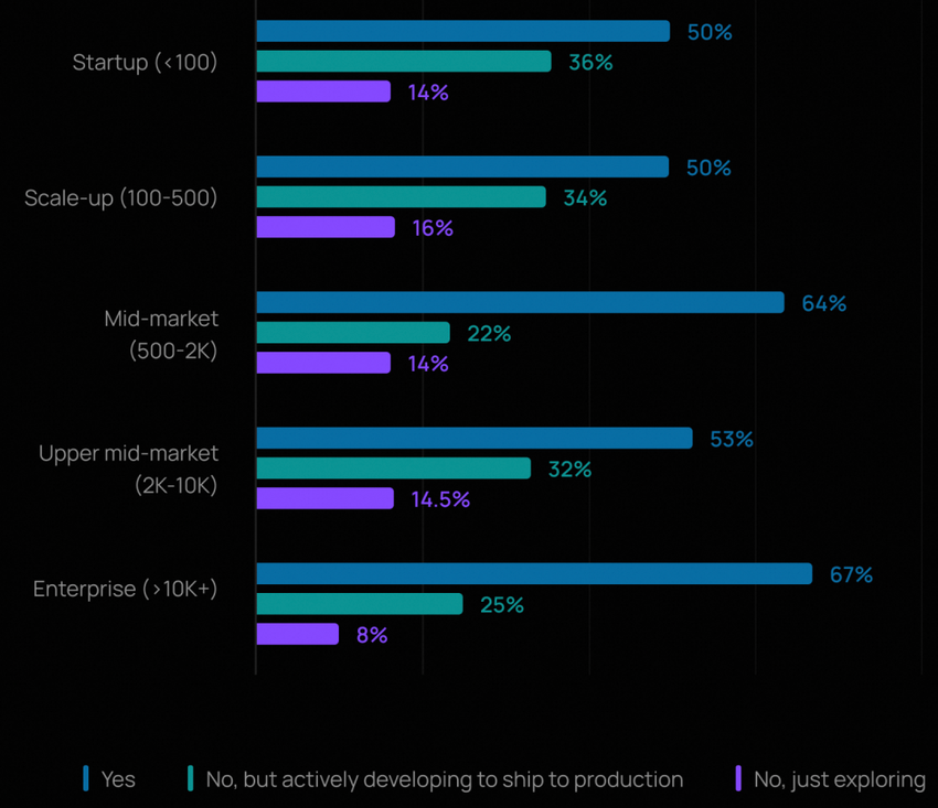 这种差异不仅反映了资源投入的差距,更折射出大型企业在应对新技术时的策略优势:它们往往拥有更成熟的合规流程和风险承受能力,能够支持更长周期的技术验证。同时,大型企业丰富的业务场景也为Agent的落地提供了天然的试验田,使其能够更快地从单点试运行过渡到规模化落地。
