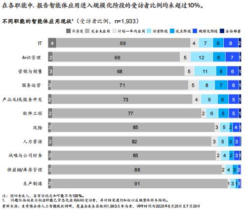 作为2025年的核心主题,“AI智能体”无疑是最大的风口。但报告数据将其拉回现实:它仍是少数玩家的前沿试验。