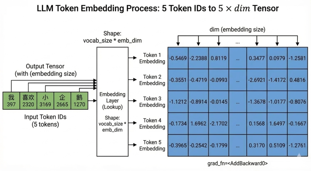 但对模型来说,只是五个整数,它并不知道 397(我)和 2320(喜欢)之间有什么关系。如果我们直接用这些整数去计算,模型会“懵圈”。