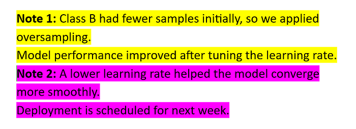 def keyword_based_chunking(text, keywords): """ 在指定关键词处进行切块。 """ chunks = [] # 构建正则表达式,匹配所有关键词并保留关键词本身 # 使用非捕获组 (?:...) 结合 | 运算符 pattern = '|'.join(re.escape(k) for k in keywords) parts = re.split(f'({pattern})', text) # 使用捕获组保留分隔符 current_chunk = "" for part in parts: if part.strip() in keywords: # 如果当前部分是关键词 if current_chunk.strip(): # 将之前的累积作为新块 chunks.append(current_chunk.strip()) current_chunk = part # 关键词作为新块的开始 else: current_chunk += part if current_chunk.strip(): # 添加最后一个块 chunks.append(current_chunk.strip()) return [chunk for chunk in chunks if chunk] # 过滤空块print("\n--- 9. 基于关键词切块 ---")keywords_for_chunking = ["Note:", "首先是", "接着是"]chunks_keyword = keyword_based_chunking(sample_text_long + sample_text_structured, keywords_for_chunking)for i, chunk in enumerate(chunks_keyword): print(f"Chunk {i+1}:\n'{chunk}'")