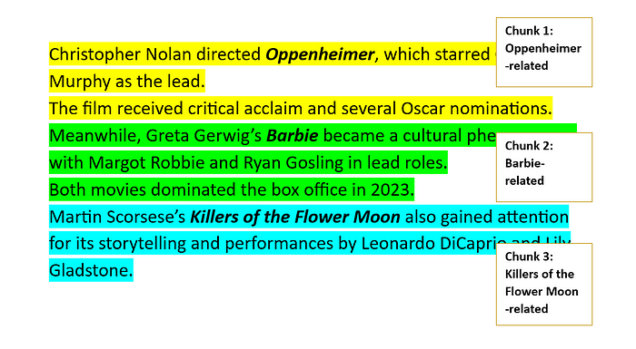 - 场景使用: 适用于文档中特定实体(人名、地名、公司、产品等)是核心信息的场景,如新闻文章(围绕特定人物或事件)、法律合同(围绕当事人)、医学报告(围绕患者、疾病)、电影剧本(围绕角色)。当你希望检索结果能聚焦于某个实体及其相关描述时,这种方法能提供高度相关的上下文。