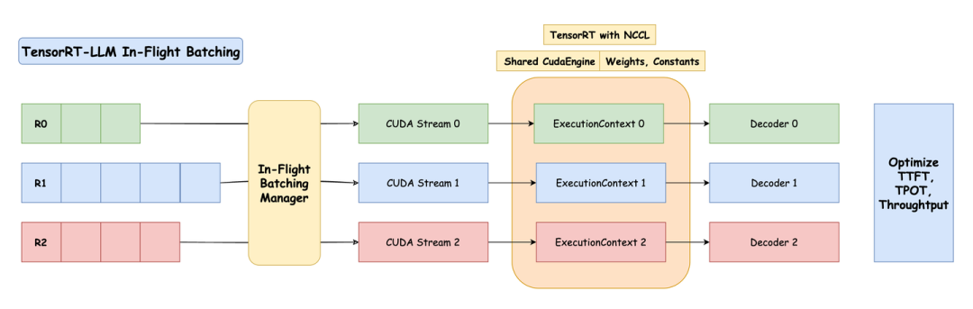 动态请求合并:将不同序列的请求拼接为统一张量,自动填充和码处理。例如,将用户查询"连衣裙推荐"和"如何退换货?"合并为一批。