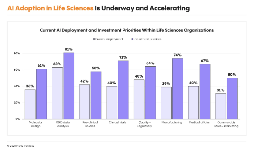 与医疗机构相比,药企和Biotech对于AI的采用仍处在早期。