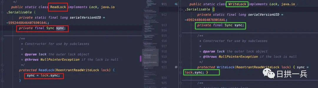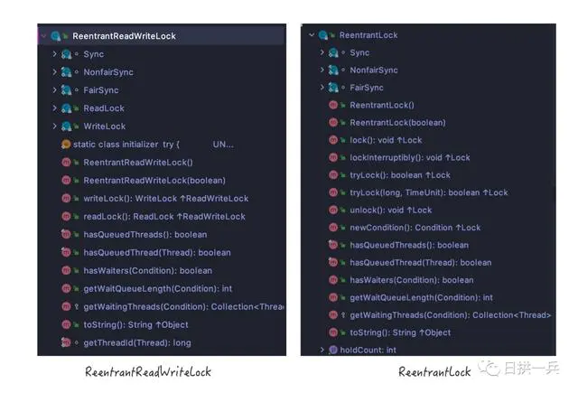 直接对比ReentrantReadWriteLock 与 ReentrantLock的类结构