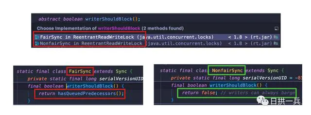 简单来说,如果请求读锁的当前线程发现同步队列的 head 节点的下一个节点为排他式节点,那么就说明有一个线程在等待获取写锁(争抢写锁失败,被放入到同步队列中),那么请求读锁的线程就要阻塞,毕竟读多写少,如果还没有这点判断机制,写锁可能会发生【饥饿】