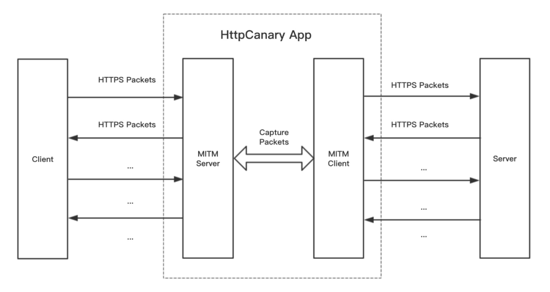 几乎所有网络数据的抓包都是采用中间人的方式(MITM),包括大家常用的Fiddler、Charles等知名抓包工具,HttpCanary同样是使用中间人的方式进行抓包。