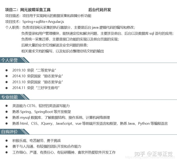 大家并不一定完全使用这个模板,大家可以自己去找模板,只要把能模板上的信息完整地填充到你的模板上,都是很好的简历。