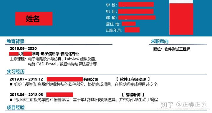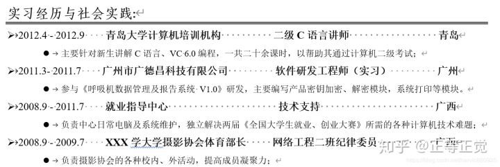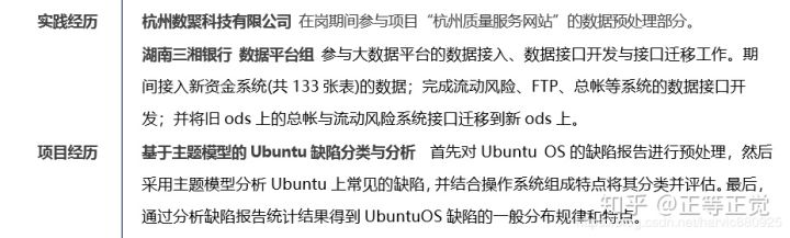 如果有实习经历和项目经历一定要着重写,而且在写的时候,实习经历可以一带而过,写个职责简介即可: