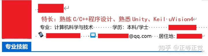 看这位同学的简历,有些用图标,有些用文字,而且文字完全没对齐,毫无美感。个人简介这里不必写特长,下面已经有了专业技能栏,这里没必要再重复。
