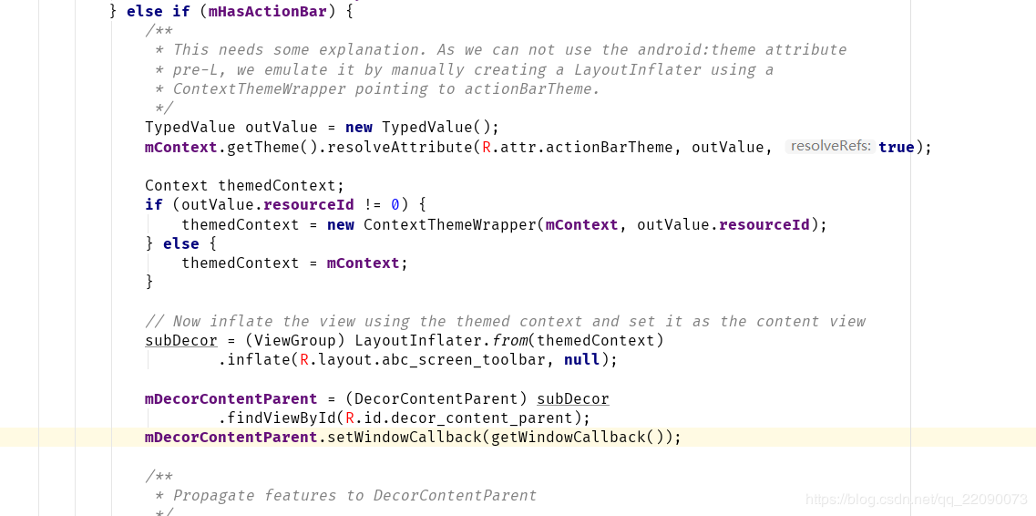 可以看到,错误定位到了AppCompatDelegateImpl.java的第753行,我们点进去看一下: