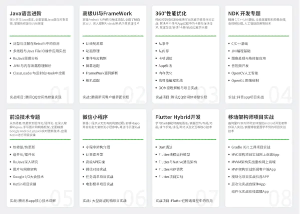 深度对接腾讯T3高级工程师级别的主流技术体系,并且综合了目前的各大互联网公司如华为,抖音,OPPO,阿里等主流技术(即使你不想选择腾讯,其它的大厂照样适合)