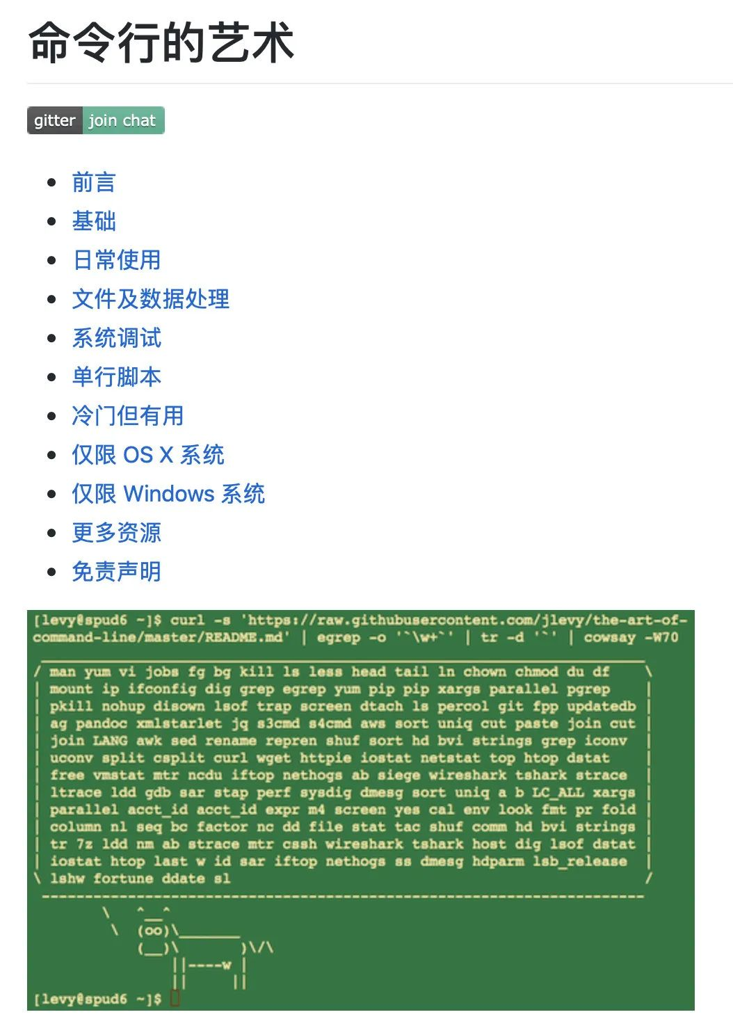 如果你想学好命令行,除了看《鸟哥的私房菜》,还可以看看这个项目。