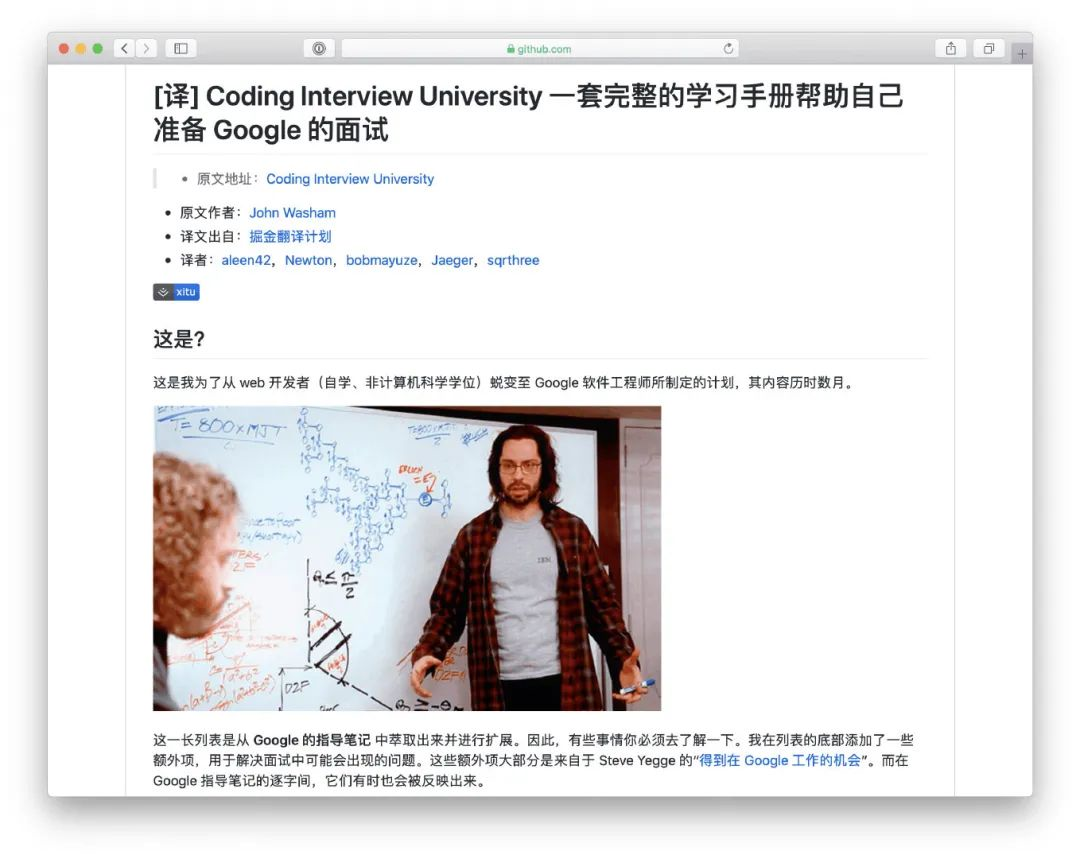 这个项目此前我们也在 GitHubDaily 公众号上分享过,该项目作者 John 为了希望获得进入 Google 工作的机会,投入了大量精力去学习。