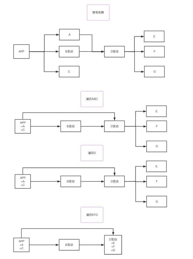 需要遍历每一个 module 的依赖关系进行置换, module 依赖怎么获取?一次性能获取到所有模块依赖,还是分模块各自回调?修改其中一个模块依赖关系会阻断后面模块依赖回调?