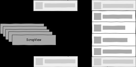 ListView通过回收一些不可见的Views,通常在Android源码中称为“ScrapView(废弃的View)”来解决这个问题。这及意味着开发者只需要简单的更新每行的内容而不需要针对每个单独的行的布局来创建View。