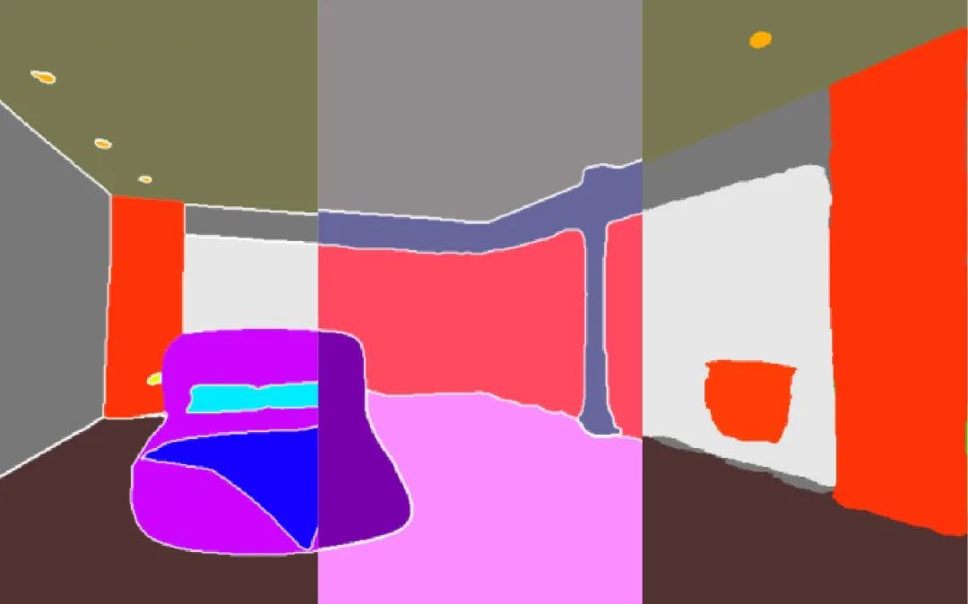 我们知道MLSD是通过线条去识别物体的。大家有没有想过,当两件物体的外形是一样的,比如一个衣柜和一个冰箱,它们都是长方体,仅仅通过线条来识别,并不能很好的区分它们。显然,此时仅有MLSD已经无法胜任了,这时就需要用到Seg(语义分割),