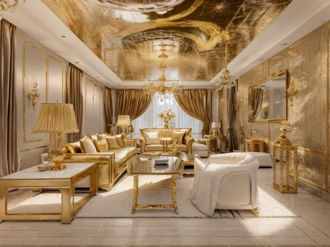 (8k,RAW photo,best quality,masterpiece:1.2),realistic, photo-realistic,,living room,luxury,extravagant,spacious and bright,gold,italian style,