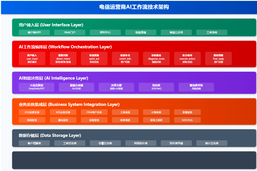工作流把“人类的分工、工程化思路和智能能力”结合起来,是运营商把“智能”变成“稳定服务”的关键路径。把模型能力视为“判断与建议”,把核心的写操作(工单、计费、派单)视为受控的接口和节点,你就能既获得自动化效率又保证工程可控性。