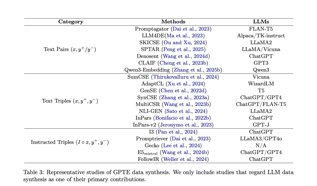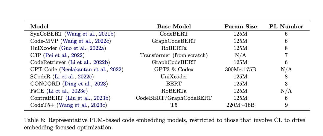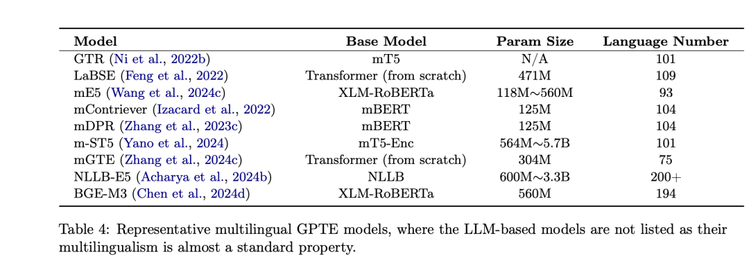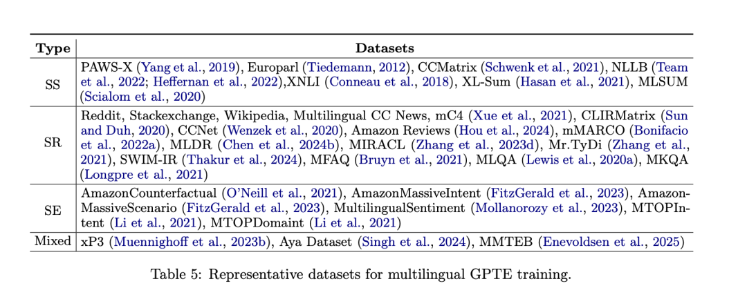 详细说明了通用的训练架构,并总结了训练数据和评估基准方面的进展。接下来,我们考察了PLMs在GPTE中的基础作用,包括派生嵌入的方法、训练策略、多样的学习目标以及丰富高质量数据集的方法。我们还提供了关于代表性GPTE模型在规模和骨干PLMs方面的比较分析。此外,我们探讨了由预训练语言模型(PLMs)支持的几种高级功能,如对多语言和多模态嵌入的支持、与编程语言的集成以及对多样化现实场景的适应。最后,我们讨论了超出当前生成式预训练Transformer(GPTE)范围的有前景的未来方向,包括整合文本排序、解决GPTE中的安全和偏见问题、利用结构信息以及扩展具有推理能力的GPTE。