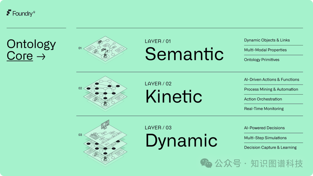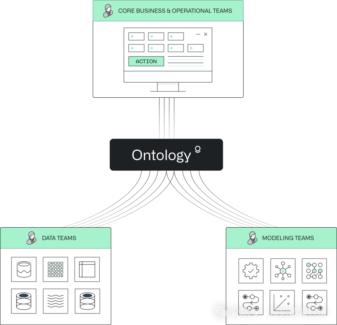 Ontology将多源数据抽象为对象与链接,构建统一的数据语义网络,便于后续人机协作与知识沉淀。