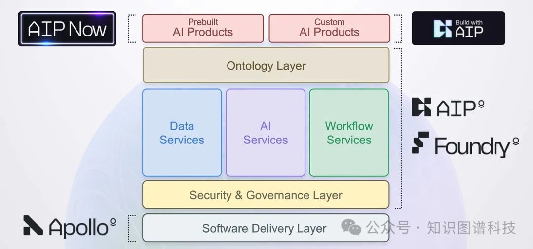 Palantir平台包括Ontology(本体)、决策组件,以及Palantir AIP、AI mesh、AI驱动Web/移动/边缘应用等。Ontology是实时决策的“底座”,可以自动集成数据、逻辑、动作组件,支持传统BI分析、AI开发与业务协作,是企业AI决策的支撑系统。